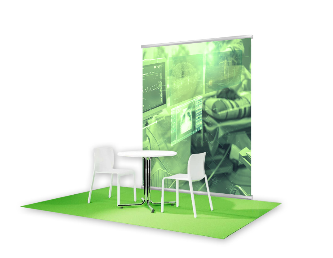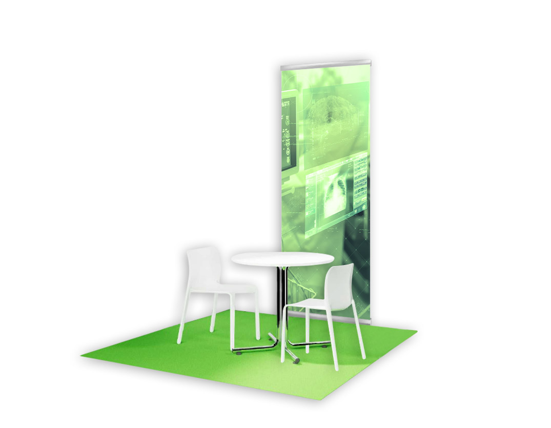 Stand + mesa + 2 sillas + Roll up doble 150x200mm