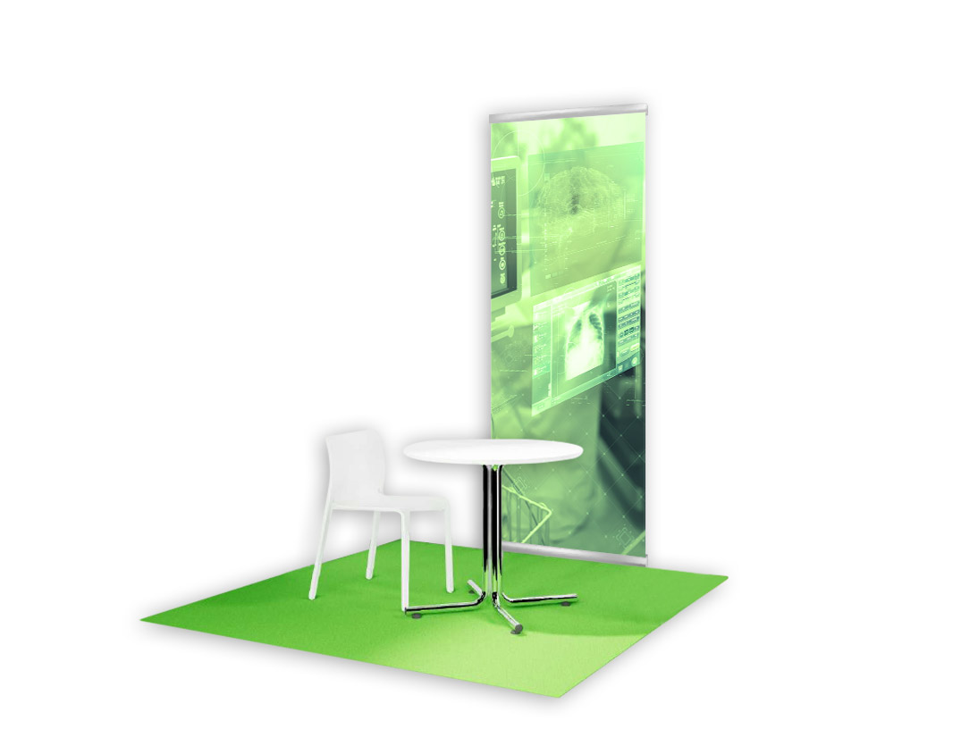 Stand + mesa + 2 sillas + Roll up doble 150x200mm